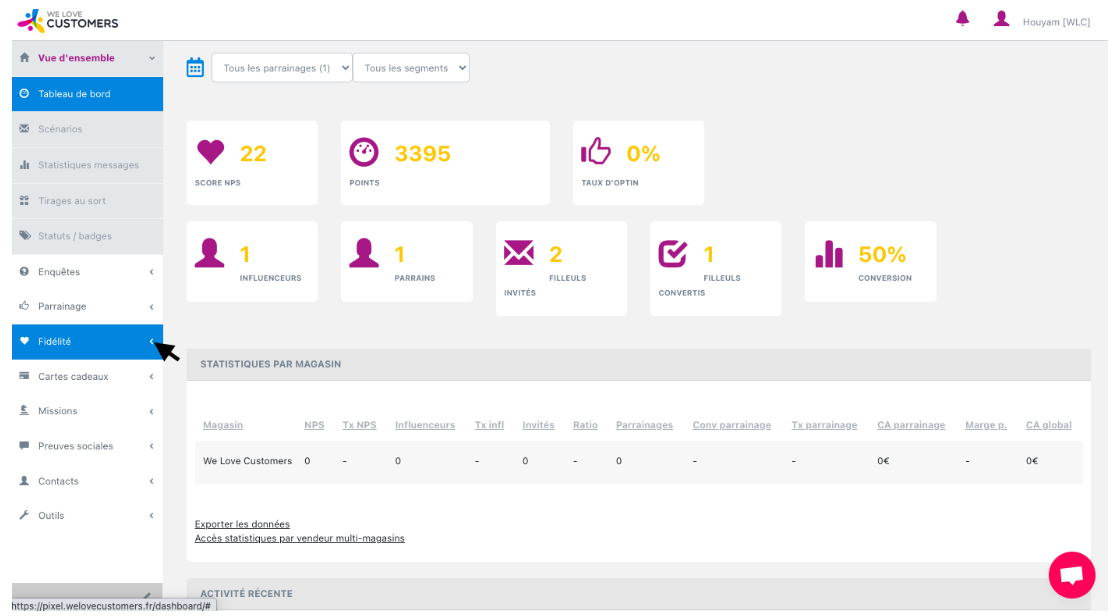 Depuis le tableau de bord de votre compte, rendez-vous dans la section Fidélité. C’est là que vous trouverez toutes les informations relatives à votre programme de fidélité, y compris les statistiques.